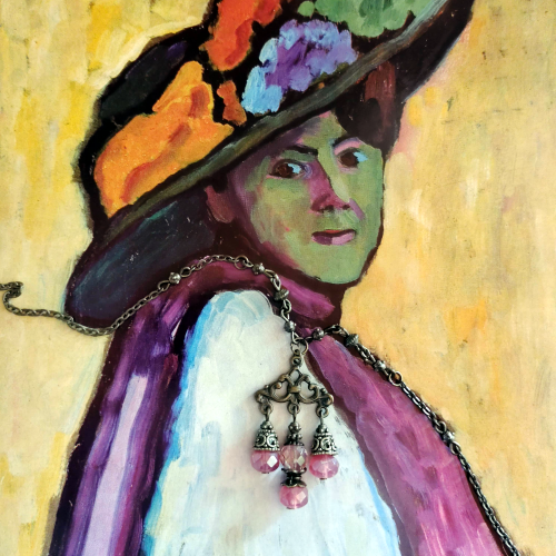 Material: Vintage-Bronze, Glasschliffperlen, Bronze-Elemente, Karabinerhaken-Verschluss