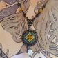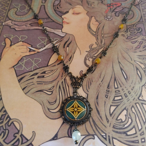 Material: Vintage-Bronze,Glasschliffperlen, Bronze-Elemente, Cabochon-Anhänger, Karabinerhaken-Verschluss