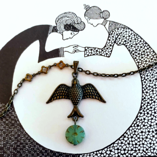 Material: Vintage-Bronze, Glasperle, Bronze-Element, Karabinerhaken-Verschluss