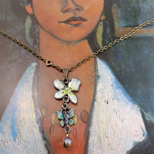 Material: Vintage-Bronze, Glasschliffperle, Bronze-Elemente, handcoloriert, Karabinerhaken-Verschluss