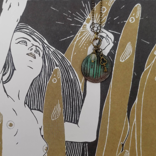 Material: Vintage-Bronze, Glasschliffperle, Bronze-Elemente, handcoloriert, Karabinerhaken-Verschluss